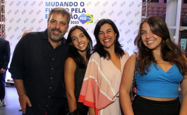 Em 2023: Alexandre e a aniversariante de hoje Vera Cristina Gribel com as filhas Ana Júlia e Maria Clara