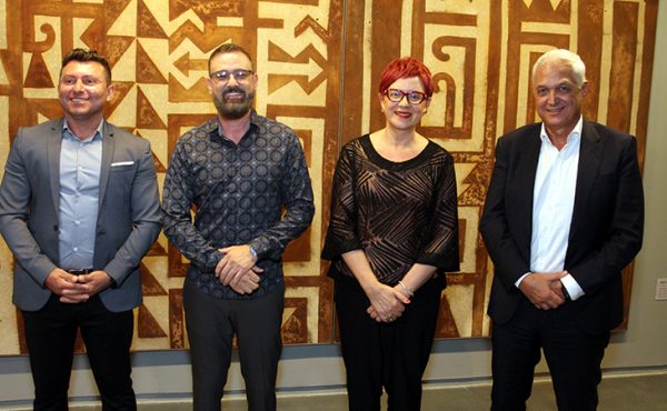 Anteontem no coquetel da exposição “Visível Sensível” do colecionismo ao museu na Casa Fiat de Cultura, apresentando obras pertencentes ao Centro de Memória Usiminas (fotos Tião Mourão): o curador Rodrigo Vivas, o secretário de Cultura de Minas Gerais Leônidas Oliveira, a gestora de cultura Ana Vilela e o presidente da Usiminas Marcelo Chara…
