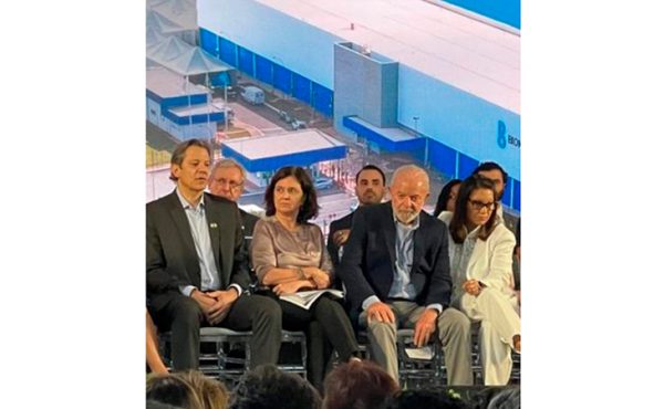 Os ministros Fernando Haddad e Nízia Trindade e o casal Lula e Janja ontem na Bionn, em Nova Lima