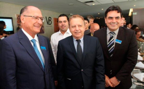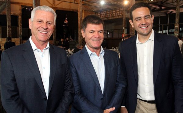 Em 2018: O vice-presidente Geraldo Alckmin, o prefeito de Betim Vittorio Medioli e o aniversariante de hoje, deputado federal Domingos Sávio